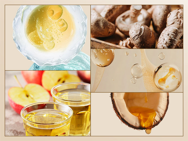 EDI purified water, Cocoplex™ fermented coconut oil, OPTIMEALTH® OR postbiotics, CHAMPEX® Champignon mushroom extract, Glucose oxidase, Lysozyme, Lactoperoxidase, Amylase, Apple cider vinegar, Potassium sorbate.