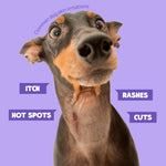 HICC Pet Skin Care Spray is intended to help aid in the management of rashes on intact skin as well as minor abrasions, lacerations, irritations, cuts, and burns. It can be used in both dogs and cats, and is generally considered safe if licked by animal.