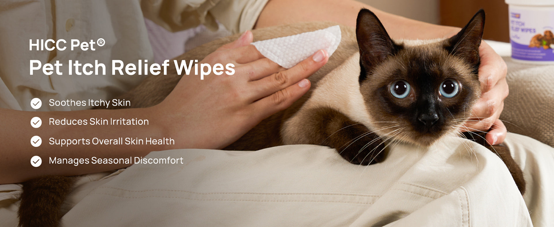 HICC Pet Itch Relief Wipes offer a gentle, convenient way to soothe your pet’s itching. Formulated with natural ingredients like CocoPlex™ Fermented Coconut Oil and a nourishing Triple Oat Complex, these wipes effectively address both mild and severe itching while promoting healthy skin.